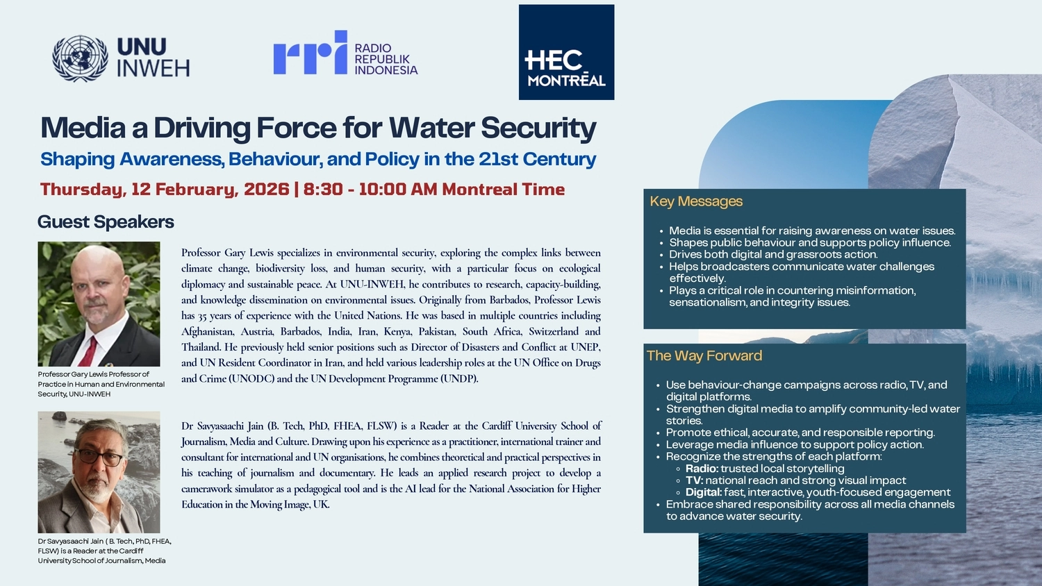 Kegiatan ini akan membahas bagaimana media membentuk pemahaman publik tentang isu-isu air, mempengaruhi perilaku, dan mendukung tindakan kebijakan. Workshop ini akan membahas keterlibatan digital dan akar rumput, peran penyiaran, serta tantangan seperti disinformasi dan sensasionalisme.